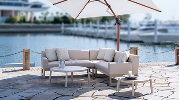 Joy of Outdoor Living をもっと手軽にシンプルに。雨を理由に、屋外をあきらめないアウトドアソファの使用で最も気にかかるのがクッションのメンテナンスです。JOL PLUSのソファはそれを解決したクッションレスソファです。