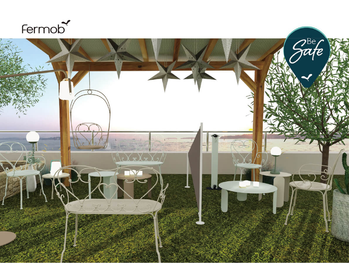 これからは衛⽣的で清潔な場所、そして屋外空間が好まれます。 フランスの屋外家具ブランド FERMOB(フェルモブ)から⽣まれた新しい衛⽣グッズ “Be Safe” 。 ソーシャルディスタンスと楽しい⾷事の調和…